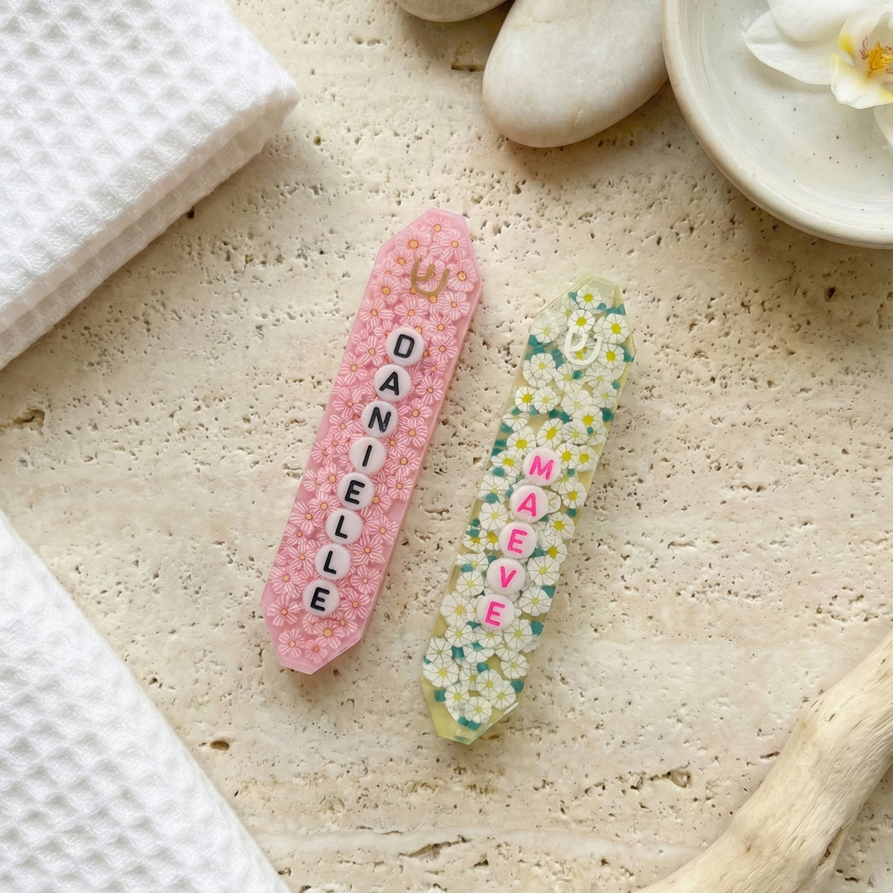 POPPSI creates one of a kind, handmade resin mezuzah cases that will surely make a statement in your home and bring your doorframe to life!