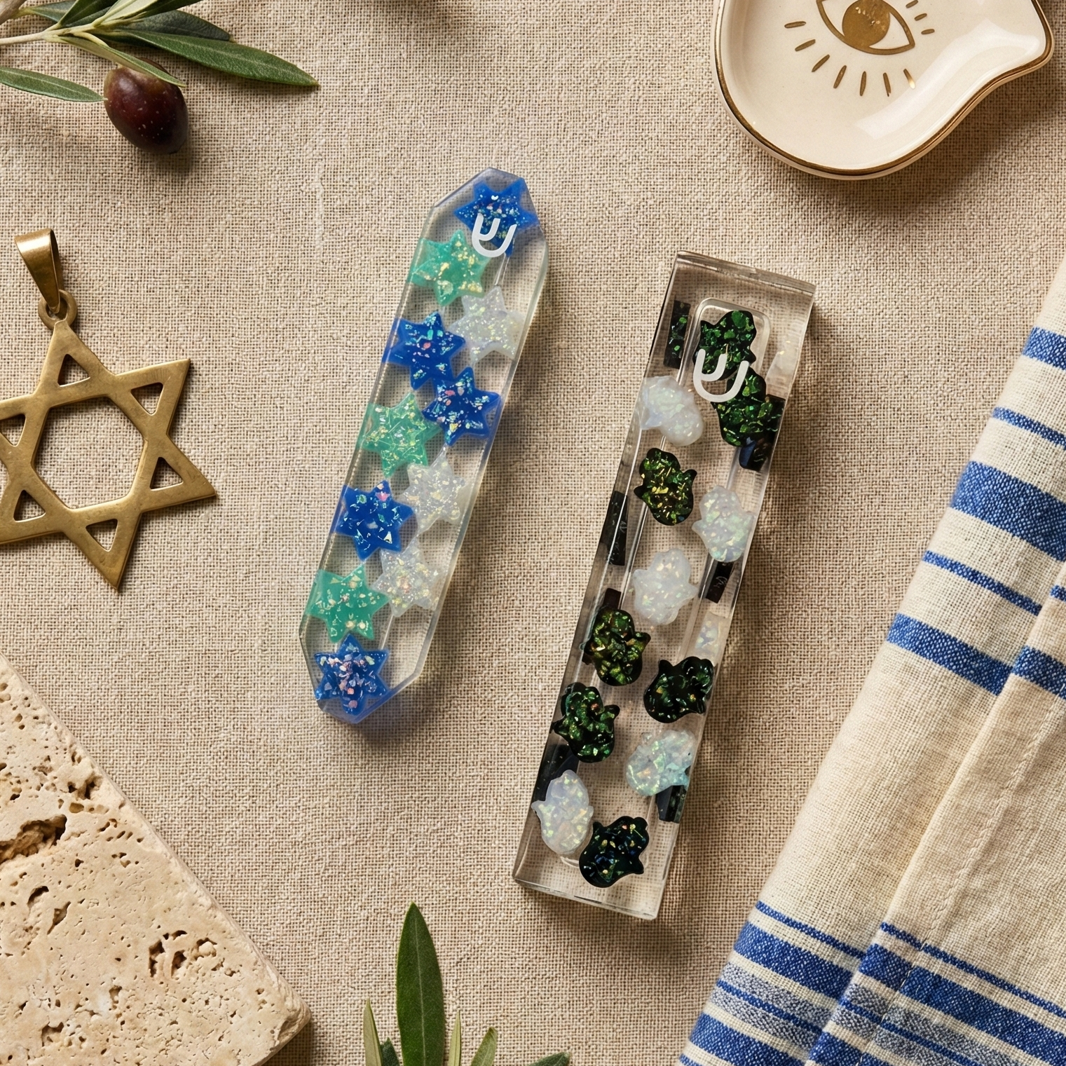 POPPSI creates one of a kind, handmade resin mezuzah cases that will surely make a statement in your home and bring your doorframe to life!